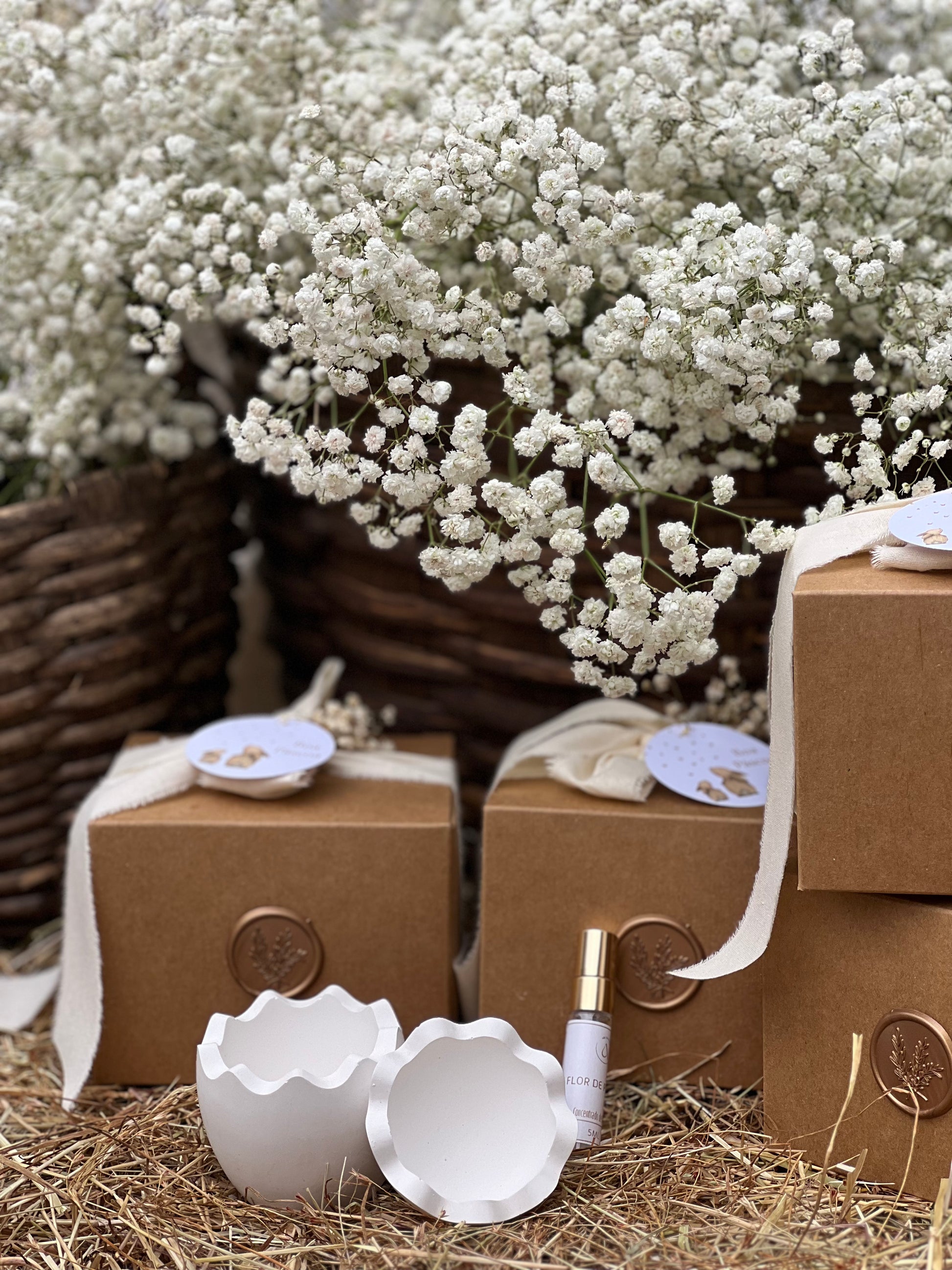 Uma vez que utilizamos flores naturais, é importante que estas sejam retiradas da embalagem de envio para que possam secar naturalmente, evitando a acumulação de humidade que possa danificar as restantes peças.