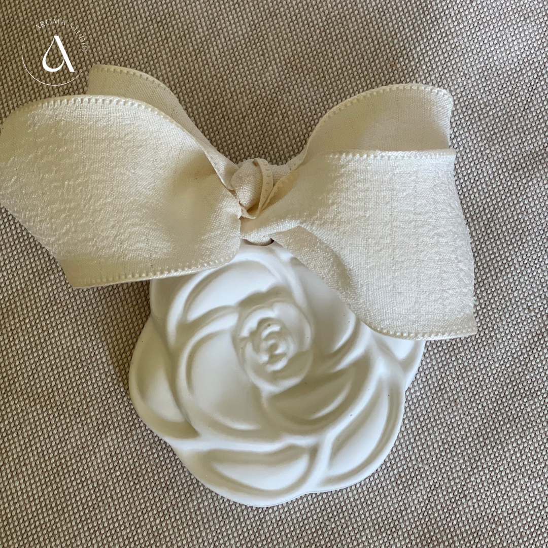 A peça em gesso é enviada dentro de uma caixa branca (igual às imagens), uma fita e um pequeno cartão personalizado (mensagem: "para uma pessoa especial" preso com um alfinete dourado. Tamanho: 8 cm de largura x 4 cm altura A opção da caixa está sempre incluída, quer escolha a opção com frasco de perfume concentrado ou sem frasco de perfume concentrado. |