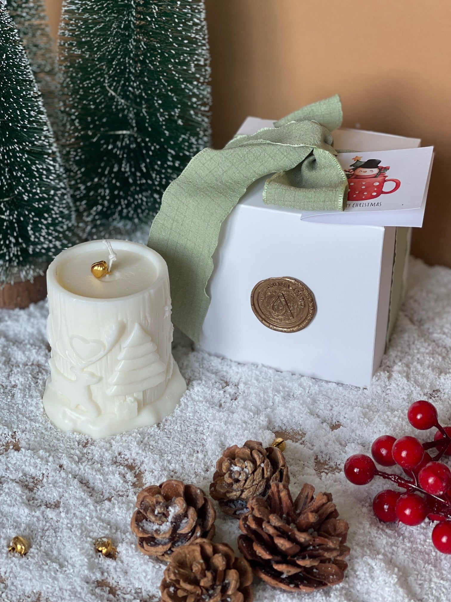 Vela Tronco de Natal, em cera de soja 100% natural.